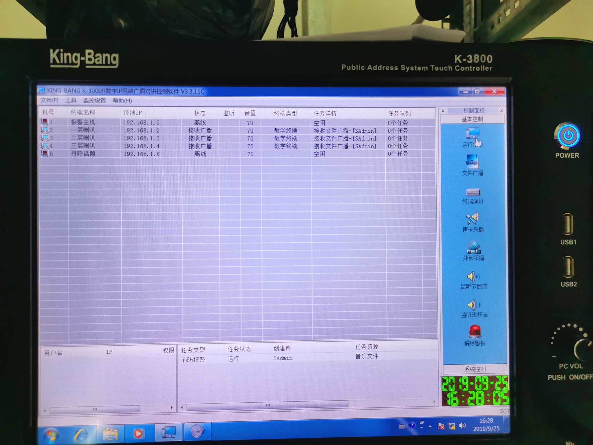 京邦(KING-BANG)廣播系統(tǒng):每層為一個單獨(dú)分區(qū),要能實(shí)現(xiàn)分區(qū)獨(dú)立控制;無需人工值守,系統(tǒng)可定時(shí)定節(jié)目全自動播放背景音樂;