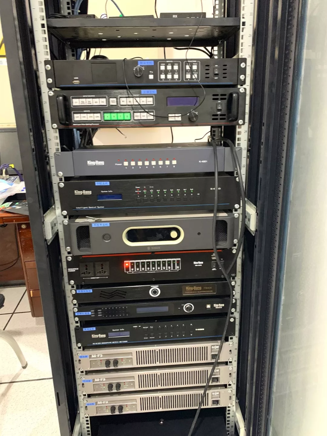 京邦電子(KING-BANG)通過對(duì)報(bào)告廳的布局環(huán)境分析,對(duì)音響設(shè)備進(jìn)行合理的布置與連接,在此報(bào)告廳會(huì)議系統(tǒng)中可以利用擴(kuò)聲系統(tǒng)提高聲源在聽眾席的聲壓級(jí)和清晰度的擴(kuò)聲,通過電聲設(shè)計(jì)去控制和改善多功能報(bào)告廳的音質(zhì),達(dá)到了會(huì)議擴(kuò)音系統(tǒng)的目的:提高響度和聲場(chǎng)分布的均勻度,改善報(bào)告廳的音質(zhì)和提高音響效果。通過對(duì)報(bào)告廳環(huán)境的分析,選出的音箱設(shè)備,并對(duì)音響設(shè)備布的布局作了精心的設(shè)計(jì),因此這套會(huì)議系統(tǒng)除了滿足會(huì)議擴(kuò)聲系統(tǒng)可以達(dá)到提高響度,聲場(chǎng)分布的均勻度,改善報(bào)告廳的音質(zhì)和提高音響效果目的外,還滿足了整個(gè)音響系統(tǒng)聲學(xué)指標(biāo)設(shè)計(jì)的基本要求: