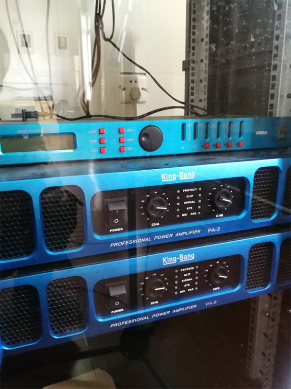 放大設(shè)備——指對(duì)經(jīng)過調(diào)控設(shè)備混音輸出、信號(hào)處理后的信號(hào)進(jìn)行后級(jí)功率放大設(shè)備,這里指專業(yè)功率放大器;重放設(shè)備——指將經(jīng)過后級(jí)功率放大器放大的音頻信號(hào)進(jìn)行電—聲轉(zhuǎn)換并釋放表現(xiàn)出來人耳可懂的聲頻信號(hào)的設(shè)備,這里指揚(yáng)聲器;