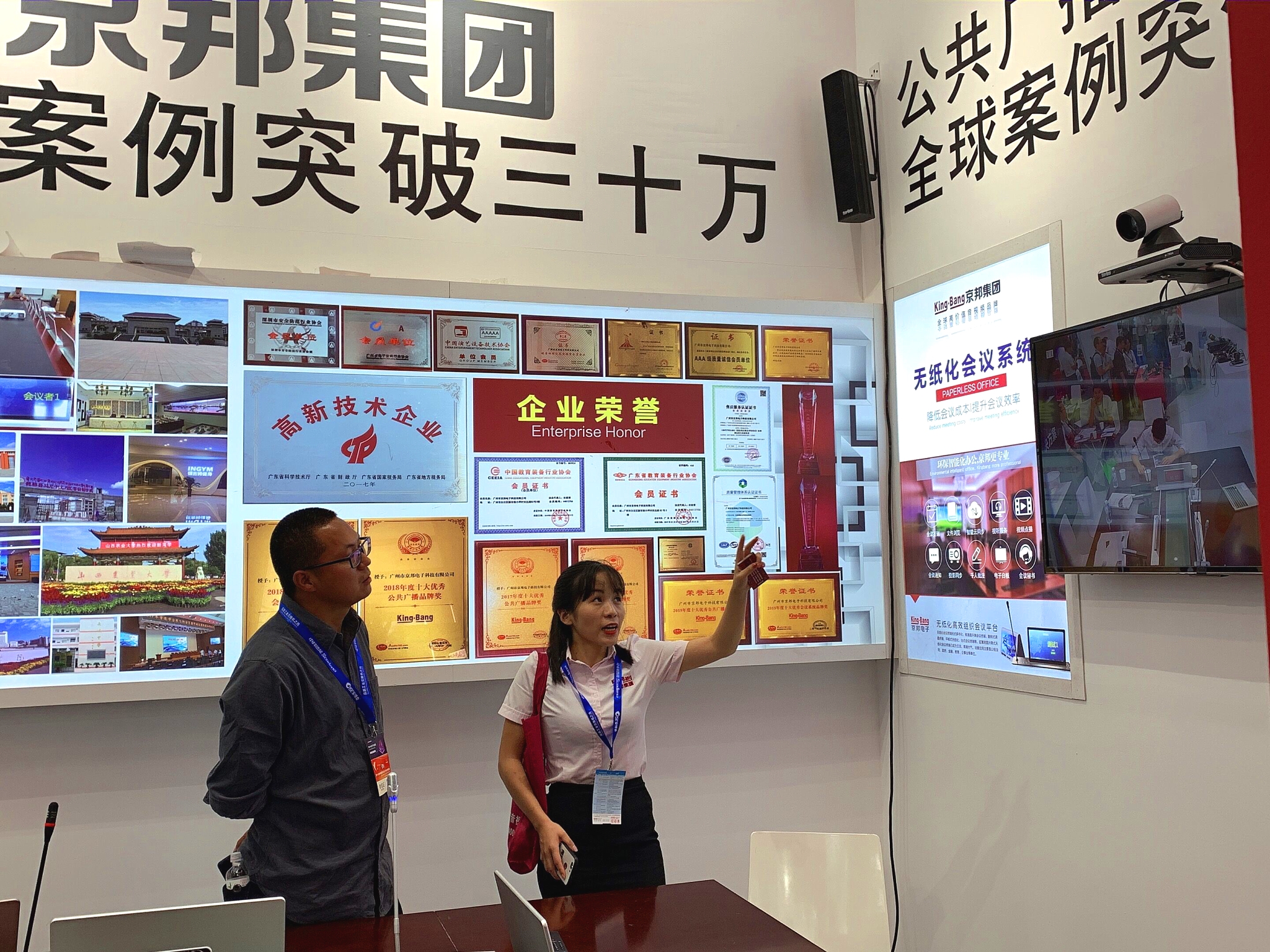 直擊展會現場·業務員為客戶講解京邦新視頻系統