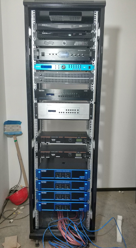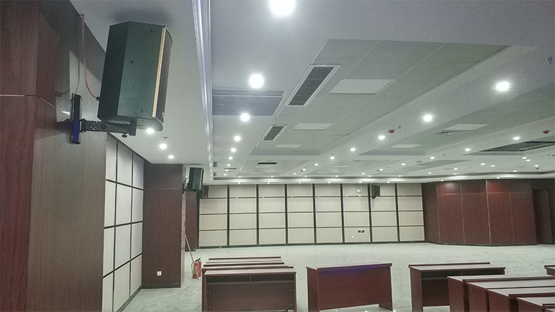 專業擴聲系統簡單來說就是把聲音信號放大,主要由聲源、音頻處理設備、功放及揚聲器系統組成。通過計算會議室的音響場地系數進行設計,保證會議室每個角落的聲場聽覺均勻,音響效果達到語言清晰、無失真、聲場分布均勻。